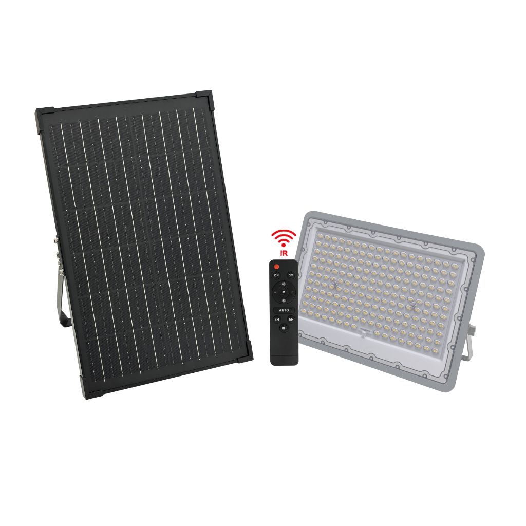 Serie di fari professionali a energia solare con pannello fotovoltaico monocristallino ad alta efficienza.