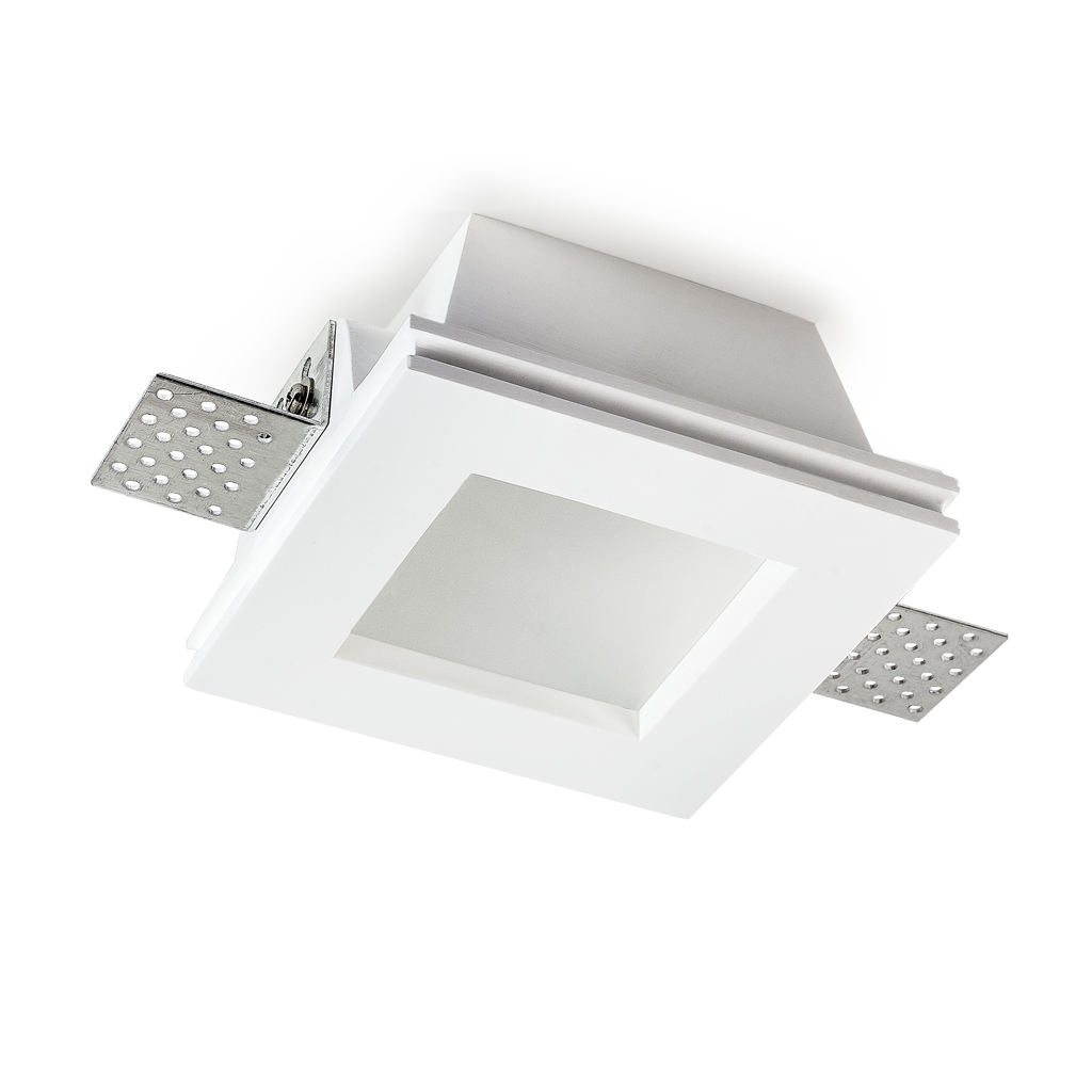 Recessed plaster downlight with tempered glass H 63 mm, to be integrated into the plasterboard to give homogeneity between the ceiling and the luminaire body.