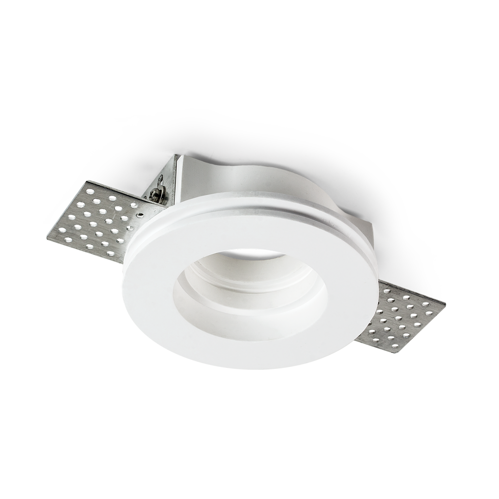 Faretto da incasso in gesso con spessore ridotto H 36 mm, da integrare nel cartongesso per dare omogeneità tra soffitto e corpo illuminante.