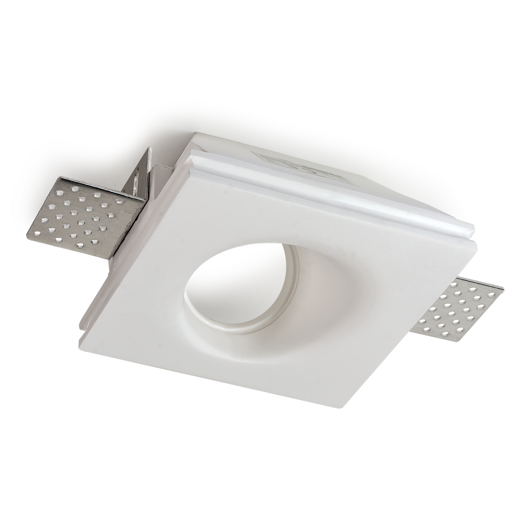 Faretto da incasso in gesso con svasatura tonda H 64 mm, con punto luce inclinato, da integrare nel cartongesso per dare omogeneità tra soffitto e corpo illuminante.